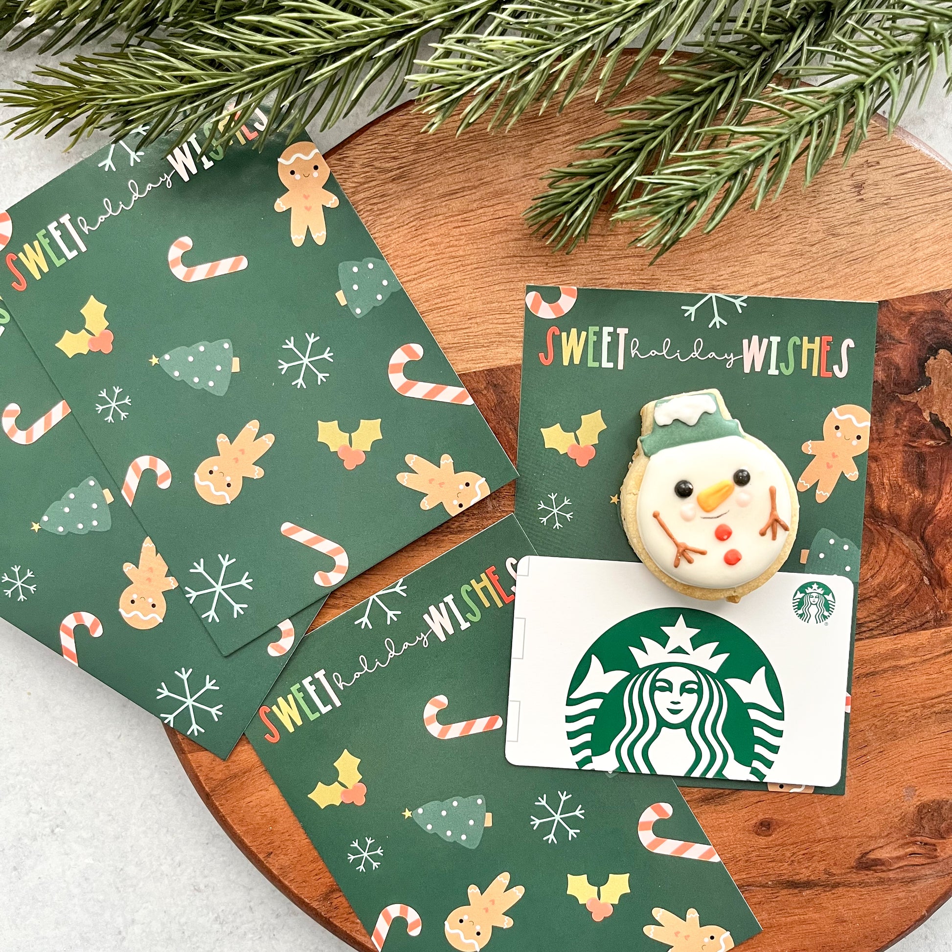 gift card dark green sweet holiday wishes 3.5x5" cookie cards - pack of 24
