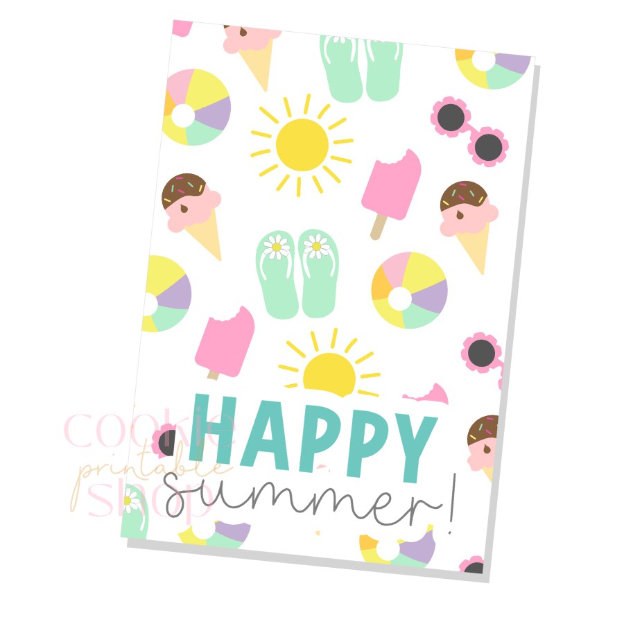 These cookie cards are the perfect thing for your summer mini cookies! I designed cookie cards specifically for mini cookies (2") to elevate your packaging and help you make more profit per cookie. Seal a mini cookie in a cellophane bag, then attach it to the card with your adhesive of choice (glue dots, tape, double stick tape, and hot glue all work!)