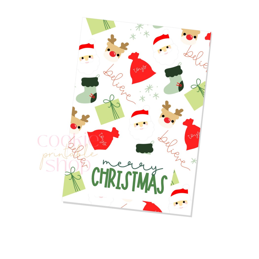 These cookie cards are the perfect thing for your holiday mini cookies! I designed cookie cards specifically for mini cookies (2") to elevate your packaging and help you make more profit per cookie. Seal a mini cookie in a cellophane bag, then attach it to the card with your adhesive of choice (glue dots, tape, double stick tape, and hot glue all work!)