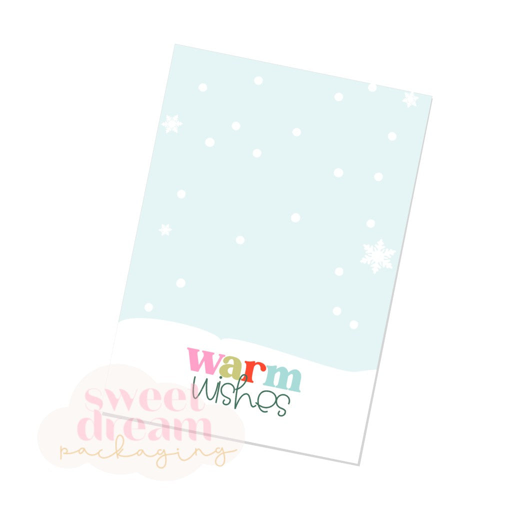 These cookie cards are the perfect thing for your holiday mini cookies! I designed cookie cards specifically for mini cookies (2") to elevate your packaging and help you make more profit per cookie. Seal a mini cookie in a cellophane bag, then attach it to the card with your adhesive of choice (glue dots, tape, double stick tape, and hot glue all work!)